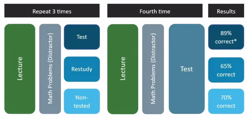 - It is not necessary to test all information to see the FTE. Short quizzes on part of immediately learned or past learned (distributed) information is effective.