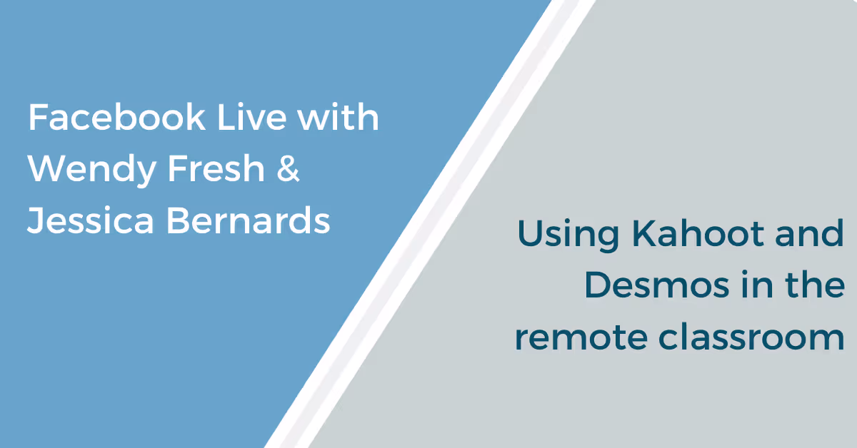Join Wendy and Jessica Thursday, March 26, 2020 at 12 pm PST for a Facebook live. They will answer all your questions on using Kahoot! and Desmos in the remote classroom. Click HERE to join the elearning Facebook group if you are not a member.